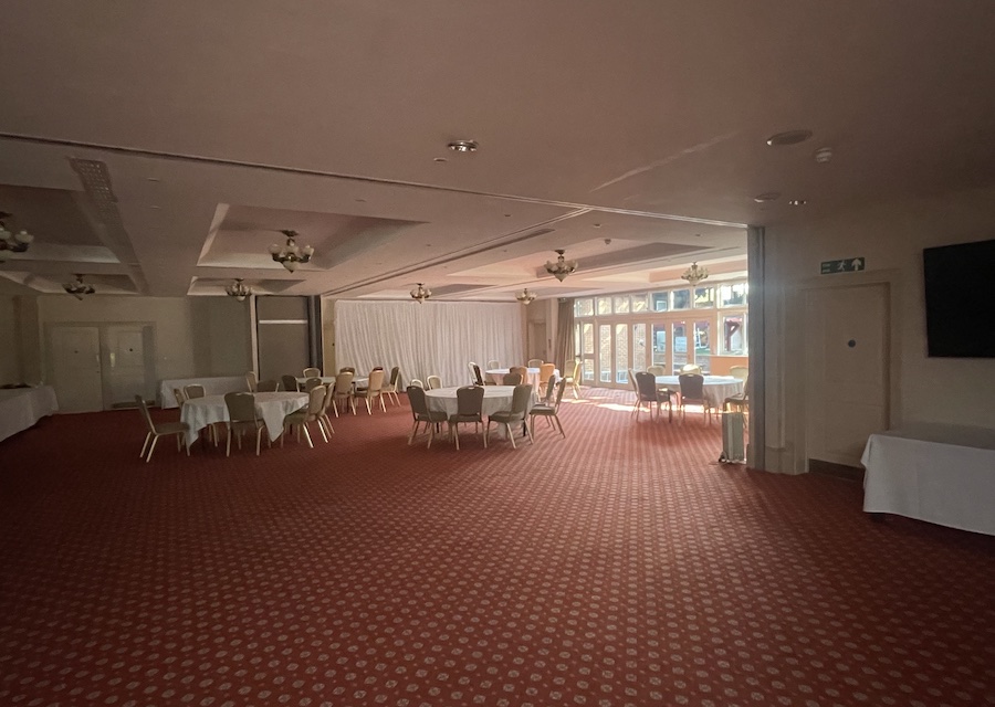 The spacious ballroom serves as a private function room, complete with its own entrance and dedicated facilities, allowing guests to gather in a peaceful and exclusive environment. This ensures a sense of privacy and calm, where friends and family can come together to share memories and support one another.