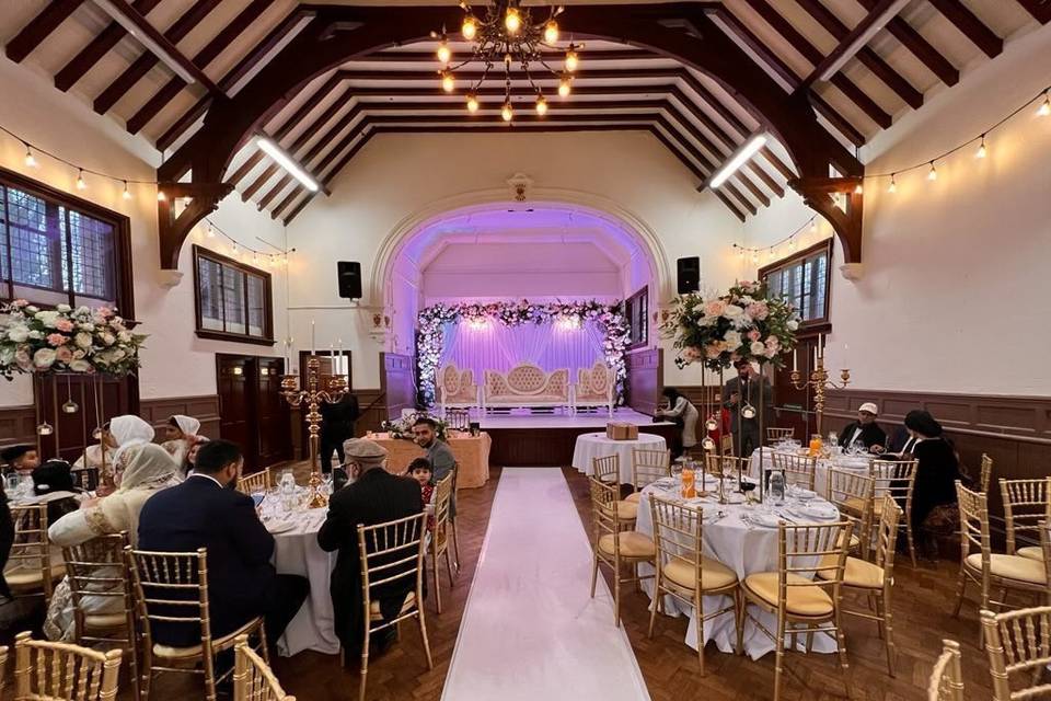 Hall decorated and ready for your arrival